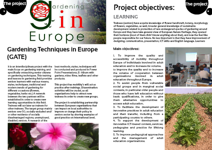 Trainees (seniors) have acquire knowledge of flower handicraft, botany, morphology of flowers, vegetables, as well, broader general knowledge of sustainable development related to protection of rare endangered species of gardening around Europe and they have take general view of European Nature Heritage, they opened their horizons (most of them didn’t know anything about that), and now the feel like people responsible for our future. No less important is that they have improvement of designing, communication, presentation, ICT skills and English language. Learners have done practice in what they have learned during local project meetings.