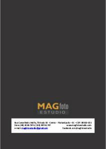 Rua Conselheiro Mafra, 758 sala 03 - Centro - Florianópolis – SC – CEP: 88010-102 Fone: (48) 3028-7676 / (48) 9978-1747 www.magfotoestudio.com e-mail: