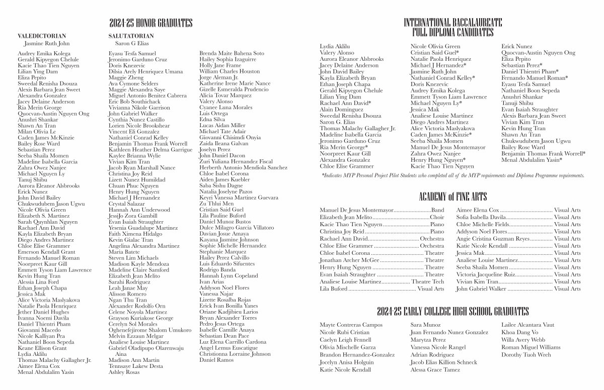 Audrey Emika Kolega Gerald Kipyegon Chelule Kacie Thao Tien Nguyen Lilian Ying Dam Eliza Pepito Sweedal Renisha Dsouza Alexis Barbara Jean Sweet Alexandra Gonzalez Jacey Delaine Anderson Ria Merin George Quocvan-Austin Nguyen Ong Anushri Shankar Shawn An Tran Milan Olivia Le Caden James McKinzie Bailey Rose Ward Sebastian Perez Seeba Shaila Momen Madeline Isabella Garcia Zahra Owez Nanjee Michael Nguyen Ly Tanuj Shibu Aurora Eleanor Alsbrooks Erick Nunez John David Bailey Chukwudubem Jason Ugwu Nicole Olivia Green Elizabeth S. Martinez Sarah Quynhlan Nguyen Rachael Ann David Kayla Elizabeth Bryan Diego Andres Martinez Chloe Elise Grammer Emerson Kendall Grant Fernando Manuel Roman Noorpreet Kaur Gill Emmett Tyson Liam Lawrence Kevin Hung Tran Alessia Lina Ford Ethan Joseph Chapa Jessica Mak Alice Victoria Maslyakova Natalie Paola Henriquez Jether Daniel Hughes Ivanna Noemi Davila Daniel Thientri Pham Giovanni Macedo Nicole Kalliyan Pea Nathaniel Boon Sepeda Keane Ellison Grant Lydia Aklilu Thomas Malachy Gallagher Jr. Aimee Elena Cox Menal Abdulalim Yasin