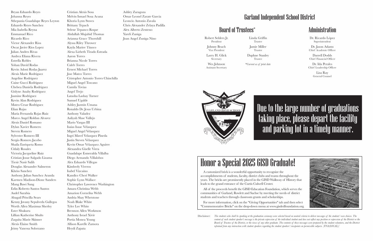 Cristian Alexis Sosa Melvin Ismael Sosa Acuna Khoria Lynn Stoves Brittany Tepach Selene Tepanco Roque Abdullah Mujahid Thomas Arianna Grace Thornhill Alyssa Riley Thrower Kayla Mariee Tinoco Alexa Lizbeth Tirado Estrada Aaron Torres Brianna Nicole Torres Caleb Torres Ernest Michael Torres Jose Mateo Torres Cristopher Antonio Torres Chinchilla Miguel Angel Toscano Camila Tovias Angel Trejo Latasha Lashay Turner Samuel Ugalde Ashley Jazmin Umana Ronaldo De Jesus Urbina Anthony Valadez Aaliyah Shae Vallejo Mario Vargas III Isaias Isaac Velasquez Miguel Angel Velasquez Ingri Mavel Velasquez Pineda Justin Steven Velazquez Kevin Omar Velazquez Aguirre Alexandra Giselle Viera Guadalupe Esmeralda Villalba Diego Armando Villalobos Alex Eduardo Villegas Kimberly Viveros Isabel Vizcaino Kandice Cheri Walker Sophie Lynn Wallace Christopher Lawrence Washington Amara Christina Webb Amarion Corneilus Webb Andria Shay Whetstone Noah Blake White Tyler Lee White Brennon Allen Workmon Anthony Israel Xivir Portia Monea Young Allison Karelle Zamora Heydi Zapata