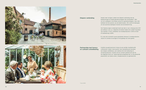 We analyseren onze culinaire keten en culinair aanbod op basis van verblijfskwaliteit voor gasten in relatie tot onze landschappen. We werken productcombinaties uit die de verkenning van onze landschappen koppelen aan tafelen en verblijven in onze regio. Dit doen we enerzijds via combinaties, zowel van topniveau als toegankelijk voor een breed publiek. Anderzijds onderzoeken we nieuwe hippe combinaties die jongere doelgroepen, vriendengroepen … aanspreken, combinaties die we jaarlijks laten terugkeren en waarvoor we de tijd nemen om deze te laten groeien.