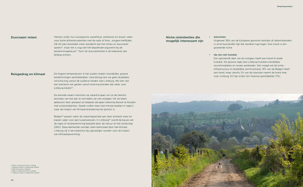 Stedelijke beleving en landschapstoerisme zijn geen tegenstellingen, ze versterken elkaar. De Limburgse stads- en dorpskernen staan in relatie tot het landschap, ook voor toerisme. De nabijheid van stad en landschap is een troef die ons onderscheidt van andere bestemmingen. In vergelijking met de kunststeden staan onze gasten quasi meteen in een groene omgeving en in vergelijking met grotere natuurgebieden kunnen onze gasten snel in een bruisende stedelijke omgeving met o. a. horeca terecht. Toerisme kan ook toegevoegde waarde creëren in de kernen wanneer we onze gasten ernaartoe leiden. Door bijvoorbeeld startpunten in of kort bij de centra te leggen en wandel- en fietsroutes via de waardevolle stads- en dorpskernen te leiden. Maar ook door gasten te stimuleren om er te verblijven, een culinaire stop te maken, te shoppen, bezienswaardigheden te bezoeken.