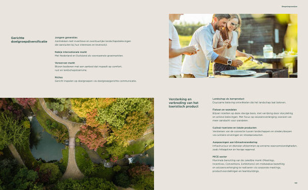 De hoofdfocus in onze communicatie ligt op belevingen die de reis en / of omweg waard zijn. Dit zijn immers de elementen die gasten aanzetten een verblijf in Limburg te boeken. We zullen echter steeds iconische trekpleisters samen met andere belevingen communiceren, zodat we onze gasten een totaalbeleving kunnen voorstellen en ook steeds opnieuw verrassende ervaringen of verborgen parels in de kijker kunnen zetten.