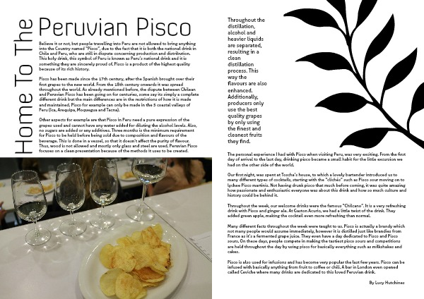 Pisco has been made since the 17th century, after the Spanish brought over their first grapes to the new world. From the 18th century onwards it was spread throughout the world. As already mentioned before, the dispute between Chilean and Peruvian Pisco has been going on for centuries, some say its simply a complete different drink but the main differences are in the restrictions of how it is made and maintained. Pisco for example can only be made in the 5 coastal valleys of Peru (Ica, Arequipa, Moquegua and Tacna).