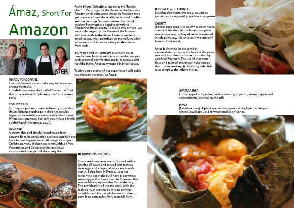 Amaz is showing its concern for sustainability by using the heart of the palm tree and implements this in their salad by carefully fraying it. The use of chestnuts flour and toasted chestnuts is what made this dish interesting. A refreshing side dish to accompany the others dishes.