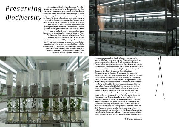 Potatoes are great, but that is of course not the main reason this Seed Bank was started. The main reason is to protect genetic biodiversity. The International Potato Center is home to the largest collection of potatoes, sweet potatoes and Andean root and tuber crops. It conserves the biodiversity of these crops and fights against the greatest threats of biodiversity such as desertification, deforestation and disease. By doing so, the center is protecting both the current availability of crops to farmers, breeders and researchers but also protects the future of our food supply. The center could be compared to a vault that hosts a priceless collection of potatoes, however that “vault” is nothing like the medieval castle you might be imagining. The genebank is built to be resistant against earthquakes and hosts different laboratories with the newest scientific equipment for their highly educated professionals to work with. The majority of cultivated crops in the center are native to Peru, however there are also crops from Bolivia, Ecuador and other Andean countries. At the moment, 80 percent of native cultivars (plant variety that has been produced in cultivation by selective breeding) have been saved and 80 percent of their wild relatives have been gathered and the status of their future existence is safe. However, many other varieties are still not found and as the threat of population growth, urbanization and climate change amongst others keeps growing, the future of their existence is at high risk.
