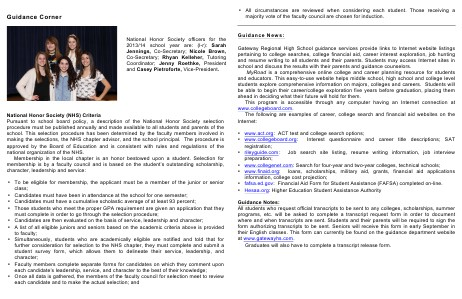 Pursuant to school board policy, a description of the National Honor Society selection