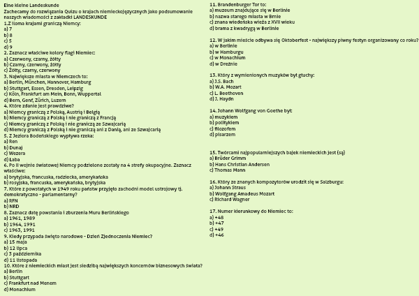 Zachecamy do rozwiązania Quizu o krajach niemieckojęzycznych jako podsumowanie naszych wiadomości z zakładki LANDESKUNDE