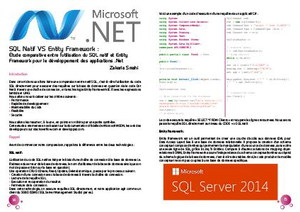 une seule ligne de SQL, grâce à Linq To Entities. Comparé à d’autres solutions de mapping objetrelationnel (ORM), Entity Framework assure l’indépendance du schéma conceptuel (entités ou objets)