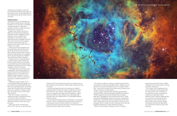 One solution could be to outsource . Outsourcing operations for around the clock back and middle-office could be one such option but is a costly and arduous process to complete before May – especially for smaller firms . Alternatively , desks have the option to outsource FX all together . In May , a paper released by the Global Foreign Exchange Division ( GFXD ) of the Global Financial Markets Association ( GFMA ) suggested the buy-side should adopt a strategic approach to managing FX risk in the lead up to the T + 1 shift , in particular highlighting outsourcing currency management – specifically “ to specialists who have trading / operations in the major trading time zones , alternate passive or active currency strategies , and 24-5 market access to wholesale FX pricing and liquidity management to assist with best execution .” However , many traders in response to the T + 1 industry issues forum queried how they could be confident best execution rules were being met if they outsourced . The changes , when implemented , are set to overhaul the way the FX markets currently operate . They will likely act as a catalyst for massive technological evolution as institutions look for solutions to the workflow challenges that arise . Initially it may only be the most automated corners of the FX market that are able to cope with the changes . Technology will be the deciding factor as to who thrives in this new post-trade landscape .
