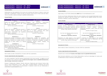 The AS Level Further Mathematics follows the same principles as the standard Mathematics course.