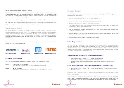 students' own programme as a wide range of choices will be on offer from the Physical Education
