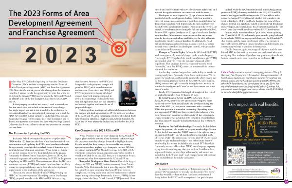 Indeed , while the IFC was instrumental in modifying certain provisions PFHQ ultimately included in the 2023 ADA and FA , some of the biggest ( and best ) impact the IFC was able to make related to changes PFHQ ultimately decided not to make to the ADA or FA due to PFIFC pushback . Keeping out some of those changes resulted in a significant benefit to essentially all franchisees and developers , and overall , made the documents significantly “ less worse ” than they would have been without PFIFC involvement .