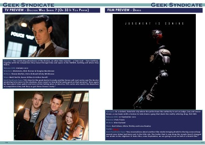 Synopsis: The continuing adventures of The Doctor, an alien time traveler - a Time Lord - from Gallifrey. Together with his companions they travel through time and space in the TARDIS, battling evil where they find it. Release (UK): Autumn 2012 Directors: Metzstein, Nick Hurran & Douglas Mackinnon Writers: Steven Moffat, Chris Chibnall &Toby Whithouse Stars: Matt Smith, Karen Gillian & Arthur Darvill Geek Syndicate Says: “It’s time for the good doctor to make another house call. Last series saw The Doctor promising to be more in the shadows, more covert so how Moffat make good on that promise? Once again we have guest stars galore and more action taking place in America. This series also marks the departure of companions Amy and Rory so get those tissues ready.”