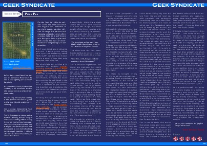 pre-pubescent perspective, in imagery, language and inference – laying down the psychological tracks that lead to Peter’s perpetual childhood in Neverland. This is not a world for children. Although he chooses to root the story in reality, the bulk of the adventure takes place in Neverland - though I don’t recall actually seeing it named in the text. If there is one thing that Peter Pan represents, it’s the joy of unfettered imagination, and Neverland fits him like a glove. I was surprised by how much I dreaded this flight to the fanciful after the revelations of the opening volume – and the tonal shift is pretty sudden – but it doesn’t take Loisel long to find his balance. His artwork is always of the very highest quality, but the flames of his creativity burn brightest in Neverland. The island is brought vividly to life, in all its contradictions: blending Greek mythology, fairy tale, stories of the blood-red waves and the wild west; and I fell in love with it again for the first time since my own childhood. The character design is fabulous throughout: from Hook’s haggard and be-stubbled face to Peter’s gap-toothed grin, while the Lost Boys have never looked wilder. The pirates’ attempts to steal the fairy treasure (and latterly exact revenge on poor Peter) are perhaps the weak point of the story. These plots suffer from the same malaise as Barrie’s original, with outlandish ploys and schoolboy tactics. That said, Hook is a formidable bully when roused, representing (as he does) all Adults in his grasping nature and cruel injustices. If this is a “story for children”, then it’s the kind they tell each other when there are no grown-ups around: one full of brutality and bloody excess. Loisel builds ambiguity into the tale from the ground level up, with parallels and analogues connecting London to that blissful island paradise: not least of which are the fantastical tales told to Peter by Mr. Kundal, his mentor and closest friend. The tension between reality and the imagination is the very backbone of the story, and is personified in the Peter/Pan dichotomy. Pan exists already, you see: a separate being, plucked from the world’s imagination and leading the fairy folk. It is only in the second half of the book that Peter and he become one and, in doing so, cement Peter’s position with the Neverlanders. The constant gravitational pull towards the adult world (most obviously embodied by the saucy sirens of both worlds but, more subtly, with chains of guilt and responsibility) sets up an internal conflict which lends Peter a real pathos in the midst of his cocky charm. Of course, it is in the denial of the “dirty” Adult that Peter Pan derives his greatest power: the boy who never grew up. It comes with a price, and that price is forgetfulness – allowing some particularly chilling events to occur. What many readers will find astonishing is Loisel’s inclusion of a Jack-The-Ripper sub-plot back in London. It is akin to the Tales Of The Black Freighter sections of Watchmen in its mix of apparent irrelevance and essential thematic link. I have theories about the psychological depths of this book that I could just go on and on about, but that’s a conversation for another day. This is one of those rare books that gives more and more each time you read it, whether it’s in the spectacular detail of the artwork, g&W6???6?v?G2??F?F?R7F?'??F?V?R?"?V???r?bF?R&????F?R'Gv?&??27V?GV?W2?F?RG&???FV?6R?BF?RV??F????V?6?W2&R?V"?7&???r???r???6??72FV?fR??F?v?r??V6??R?7F??W72??R??WFR?B??fR??RF?FV'2F?R?W?C?&V6??W2&?????rfWr??BF?N( ?2f7B?( ???7FFR?B6?V&???R??&RF??RF??Vv?( 2F??2&????2??Bf?"6???G&V????f?'7Bf?6?F?&?Vv??F??Vv?B?Bv2?( ?GV?N( ?F?F?R&V6W6R?bF?R6???W2??V?B?b&??'2??F?7???'WBF?N( ?2&V????BF?R66R?v???RF?R6?&V?2?&VB?W&??G2??fR6W?V??GW&RF?F?V??F?W&R?2??F???rF?BF?W?7GV??F?v??6??2?fW'BV??Vv?F?&RV?7V?F&?Rf?"6???G&V???B?2F?RV??F????G&V??bWFW.( ?2'W6?fR??F?W"F?B?v?V?B&?FV7B?FVv?FW"g&??F?R6?G???wVvRW6VB'?GV?G2?B6???G&V???S?F?R?G2?vWGF??rFW'&?'2?b??v?GF??R???F????BF?R??'&?&?R?V?wF?2F?v??6?F???W&&V??v?W2???W"?V??W7???F&R6?F?RF?6??F?6?7&?2v?V?Bv?fR?W"??v?F?&W2F???'WB?F??( ?Bv?BF?WB??R?fbF???V6???W7B&R6&VgV?v?W&R??R?VfR?B?V???2?BW&fV7B&??????BV?FR??&?wV?G???W2f?"??&R??FW&W7F??r?B??FW&7F?fR&VB?'WB?B?6?7F?2?Bg&??WfW"&V??rv????6F?6g???r?7&?F?6?VW7F???2?b??B?B??&?6?&7FW"&RF?76VB??F?R?"v?F??WBWfW"V?FR??F??r??B&V???6?????GFW"??r?V6???Rw&7??7W?6RF?N( ?2WFW"????fW"F??Vv??7&?v??r?v??&??W2?&???GF??'7G??GF?R&7F&C???fW&??r?W7B?WB?b&V6?( 2F?&?V?F??rF?Rw&?v??W>(