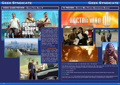 Synopsis: Franklin, a former street gangster, now looking for real opportunities and serious money; Michael, a professional ex-con whose retirement is a lot less rosy than he hoped it would be; and Trevor, a violent maniac driven by the chance of a cheap high and the next big score. Running out of options, the crew risks everything in a series of daring and dangerous heists that could set them up for life. Release (UK): 17 Sep 2013 Developer: Rockstar Games Geek Syndicate Says: āIām looking forward to GTAV the most. I always love those games for that feeling of getting away from things, a nice detailed world to explore and play in. I am curious how the three character system will work out but I trust Rockstar enough to think I will like it however it is implemented.ā