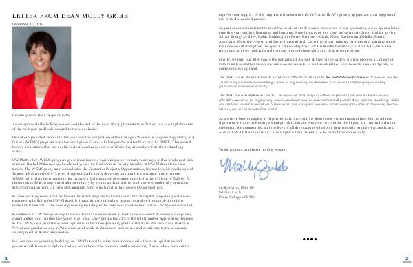 As we have been engaging in departmental conversations about these statements and how best to achieve alignment with the university’ s strategic plan, I invite everyone to consider the impact our institution has on the region, the community, and the lives of all the students who come here to study engineering, math, and science. UW-Platteville is truly a special place. I am thankful to be part of this community.