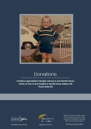 Donations appreciated in George’s memory to Jack Bendat Cancer