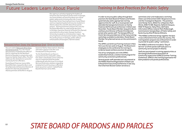 Parole Board Chairman James Mills, Board Members Jacqueline Bunn and Terry Barnard and Executive Director of Parole Chris Barnett attended the Atlanta premiere of the film in August. Governor Nathan Deal and U.S. Attorney John Horn appear in the film and introduced it at the premiere.