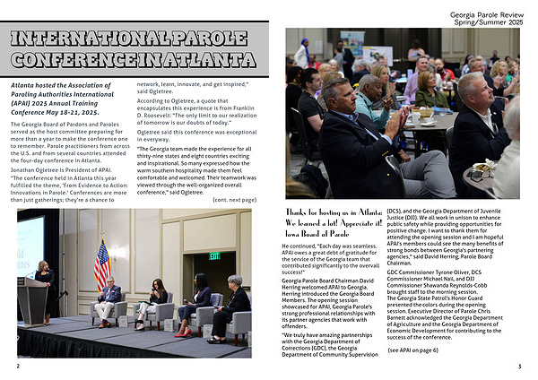 (DCS), and the Georgia Department of Juvenile Justice (DJJ). We all work in unison to enhance public safety while providing opportunities for positive change. I want to thank them for attending the opening session and I am hopeful APAI's members could see the many benefits of strong bonds between Georgia's partnering agencies," said David Herring, Parole Board Chairman.