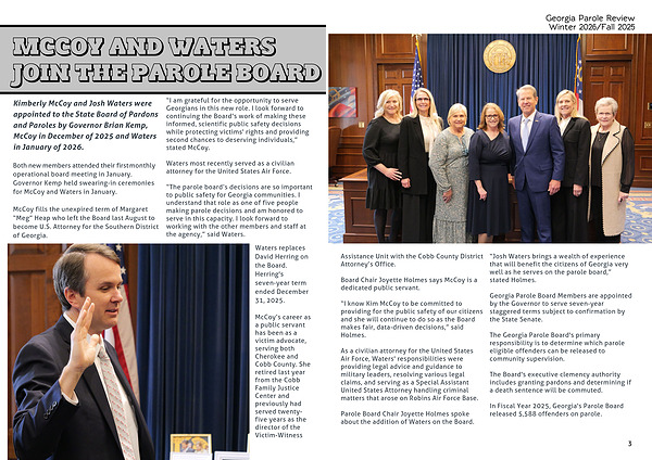 “Josh Waters brings a wealth of experience that will benefit the citizens of Georgia very well as he serves on the parole board,” stated Holmes.