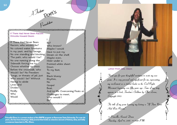 Thank you for your thoughtful invitation to recite my new poem. It is very personal and significant for me, representing my involvement as a student leader in the Civil Rights Movement beginning over fifty years ago. Some of my story appears in a book, Freedom's Children by Ellen Levine, Copyright 1993.