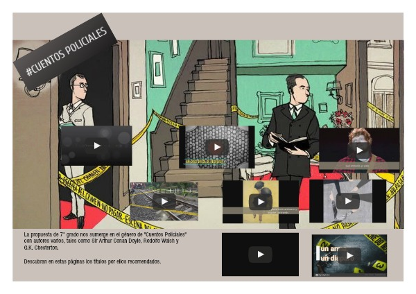 La propuesta de 7° grado nos sumerge en el género de "Cuentos Policiales" con autores varios, tales como Sir Arthur Conan Doyle, Rodolfo Walsh y G.K. Chesterton.