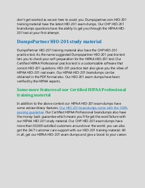 our HIPAA HIO-201 study material. Our CHP HIO-201 exam dumps have