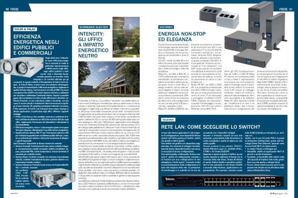 Poiché il buon funzionamento della tecnologia dipende fortemente dalla disponibilità di energia elettrica , è necessario che la sua erogazione sia ininterrotta e priva di disturbi . Gli UPS ‘ smart ’ da 600 VA a 3,3 kVA di Socomec sono stati studiati e realizzati proprio per mantenere alto il livello tecnologico nella vita quotidiana . Netys PL , da 600 a 800 VA , è l ’ UPS multipresa per connessioni semplificate : una protezione compatta e di semplice utilizzo per applicazioni home e small office . Il design moderno , anche nella versione elegante in bianco , lo rende adatto per installazioni sopra e sotto la scrivania o a pavimento . Oltre alle 6 uscite ( 4 per la protezione da black out e 2 da sovratensioni ) ha una comoda porta USB per ricaricare i dispositivi mobili . Netys PE , da 600 a 2000 VA , rap- presenta la protezione universale ed economica per uffici e per applicazioni IT in piccole aziende ( computer , workstation , reti wireless , terminali POS ). Elegante , facile da utilizzare e da monitorare grazie al display LCD / LED e le icone grafiche , funziona con tecnologia VI “ line interactive ” con AVR ( onda pseudo sinusoidale ) che stabilizza la tensione di uscita ed evita la commutazione in funzionamento da batteria , in modo da preservarne la carica in caso di black out . Netys PR MT , da 1000 a 2000 VA , è la protezione professionale per uffici e PMI in formato minitower per un facile posizionamento vicino al carico IT da alimentare e proteggere . Il software LOCAL VIEW , integrato nel dispositivo , consente il monitoraggio e lo spegnimento dell ’ UPS per sistemi Windows , Linux , MAC OS X .