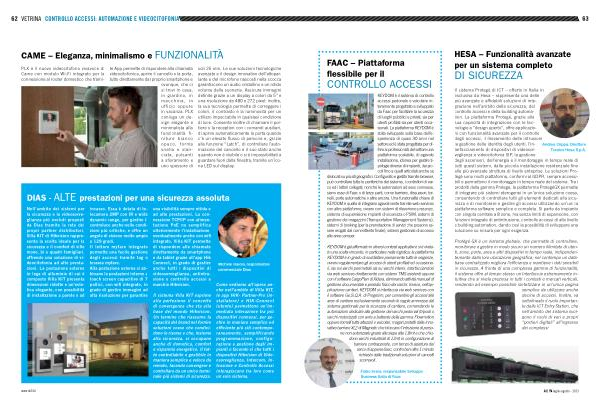 Il sistema Protegé di ICT – offerto in Italia in esclusiva da Hesa – rappresenta una delle più avanzate e affidabili soluzioni di integrazione nell ’ ambito della sicurezza , del controllo accessi e della building automation . La piattaforma Protegé , grazie alla sua capacità di integrazione con le tecnologie a “ design aperto ”, offre applicazioni con funzionalità avanzate per il controllo degli accessi , il rilevamento delle intrusioni , la gestione delle identità degli utenti , l ’ interfacciamento di dispositivi di videosor-