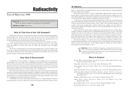Marie Curie’s studies rank as one of the great turning points of science. Physics after