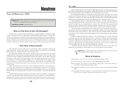 science. First, this discovery completed our understanding of the structure of atoms. Second, because they have no electrical charge, neutrons have been by far the most useful particles for creating nuclear collisions and reactions and for exploring the structure and reaction