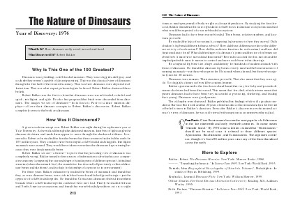 completely wrong. Bakker turned to four sources of information to develop his case: comparative anatomy (comparing the size and shape of similar parts of different species), latitudinal