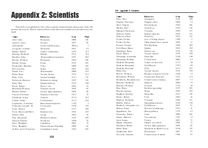 This table is an alphabetical list of the scientists featured in the discussions of the 100