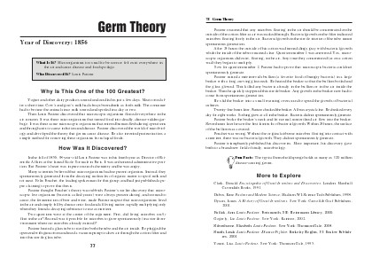 and through cuts to cause infection and disease. Pasteur discovered the world of microbiology and developed the theory that germs cause disease. He also invented pasteurization, a