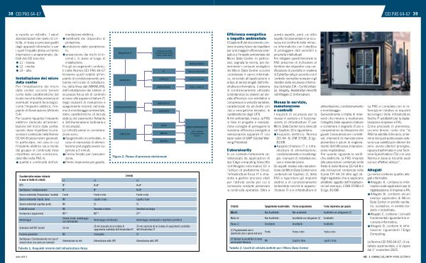 Il Capitolo 8 del documento contiene le prescrizioni da rispettare per una maggior efficienza energetica e l’ impatto ambientale dei Micro Data Center. In particolare, segnala la norma, per determinare i consumi energetici del Micro Data Center occorre considerare il carico informatico, vincolato all’ applicazione e al tipo di servizi erogati dall’ infrastruttura informatica, il sistema di condizionamento utilizzato( orientandosi su sistemi ad elevata efficienza con ventilatori e compressori a velocità variabile, caratterizzati da etichette con classi energetiche elevate), le caratteristiche degli UPS. Ai fini ambientali, invece, la PAS in fase di progetto e realizzazione consiglia di perseguire la massima efficienza energetica selezionando apparati IT con bassi valori di GWP( Global Warming Potential).
