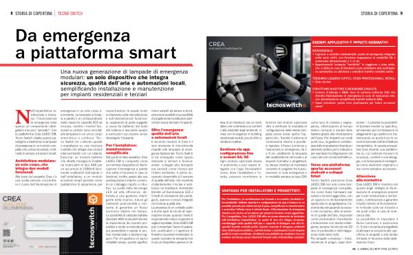 Tecno Switch posiziona Crea LA301 EM non solo come lampada di emergenza compatta, ma come base hardware per servizi e funzioni aggiuntive, con un approccio dichiaratamente aperto alla co-progettazione. L’ a- zienda sta sviluppando accessori che includono, oltre al sensore di qualità dell’ aria, dispositivi come profumatori d’ ambiente e telecamere con analisi intelligente, sempre nel vincolo dei 20 mm di profondità e dell’ integrazione nella serie civile. Per progetti complessi – hotel, residenze di pregio, spazi direzionali – è prevista la possibilità di studiare moduli su specifica, ad esempio per la rilevazione di allagamenti o gas particolari, trasformando un punto luce in un nodo funzionale dell’ architettura impiantistica. In questa prospettiva Crea diventa una piattaforma su cui costruire funzioni di sicurezza, comfort e monitoraggio, con la lampada di emergenza come elemento originario e non come semplice accessorio.