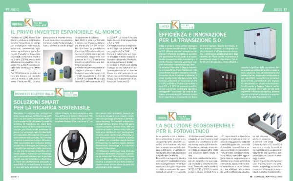 Fondata nel 2006 , Kostal Solar Electric produce e distribuisce inverter fotovoltaici di stringa per installazioni residenziali , industriali , commerciali , agrisolare , agrivoltaico e per le Comunità Energetiche . La gamma di prodotti comprende inverter da 3 kW e 100 kW , anche ibridi abbinati ad una batteria . Gli inverter fino a 20 kW possono godere della certificazione “ Made in EU ”. Nel 2024 Kostal ha portato sul mercato italiano un prodotto unico al mondo : si tratta dell ’ inverter Plenticore G3 , la terza generazione di inverter trifase . È una autentica innovazione mondiale : infatti Plenticore G3 è l ’ unico inverter al mondo dotato