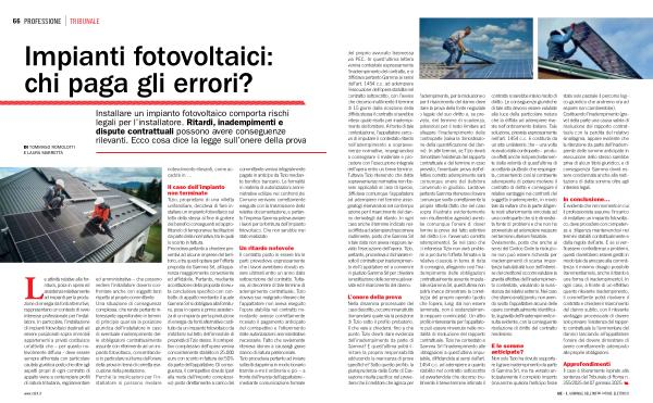 È evidente che nel momento in cui il professionista assume l ’ incarico di installare un impianto fotovoltaico , deve procedere con competenza e diligenza mantenendosi nei termini stabiliti contrattualmente e dalla regola dell ’ arte . E se si verificassero contrattempi o problemi , questi dovrebbero essere gestiti in modo tale da arrecare alla committenza il minimo disagio possibile ( rammentiamolo , anche il ritardo è una forma di inadempimento ). In ogni caso , a fronte di un effettivo quanto rilevante inadempimento , il committente potrà risolvere il contratto e chiedere il risarcimento del danno subìto , con il rilevante vantaggio processuale di dovere solo provare l ’ esistenza del rapporto contrattuale ( e l ’ ammontare del danno ) lasciando all ’ appaltatore l ’ onere del dovere dimostrare di avere correttamente adempiuto alle proprie obbligazioni .