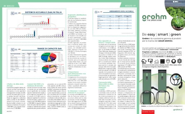 precedente, con un calo del 49 % nella capacità e del 38 % nella potenza rispetto allo stesso periodo del2024. La tendenza complessiva del 2025 riflette questo clima: la nuova capacità totale è scesa del 6 % e la potenza del 12 % rispetto all’ anno precedente, nonostante una flessione molto più netta nel volume delle unità installate(-34 %). Il mercato rimane fortemente dominato dalla tecnologia agli ioni di litio, che equipaggia il 99,7 % dei sistemi totali, coprendo il 98,8 % della capacità complessiva. |