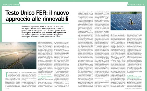 Il Decreto Legislativo 25 novembre 2024, n. 190( pubblicato in Gazzetta Ufficiale n. 291 del 12 dicembre 2024, entrato in vigore il 30 dicembre 2024) ha riscritto completamente il quadro autorizzativo per la produzione di energia da fonti rinnovabili in Italia, non come semplice novità amministrativa, bensì come primo Testo |