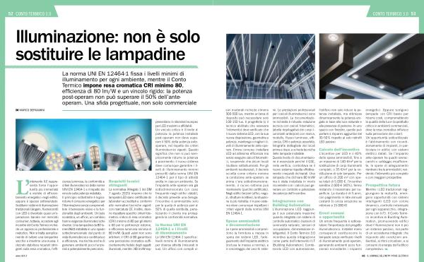 II. E rappresenta forse l’ opportunità più immediata e visibile di efficientamento energetico negli edifici, eppure è spesso sottovalutato. Sostituire i sistemi di illuminazione tradizionali( alogeni, fluorescenti) con LED è diventato quasi un’ o- perazione banale nel mercato consumer; tuttavia, accedere agli incentivi del Conto Termico richiede un approccio professionale e metodico. Non si tratta semplicemente di svitare una lampadina vecchia e inserirne una nuova: il decreto stabilisce requisiti stringenti sulla resa cromatica, l’ effi-