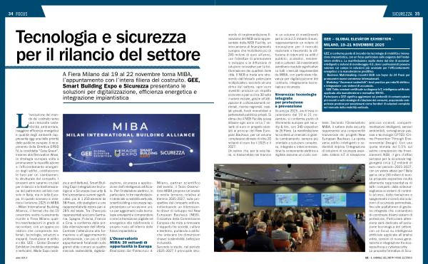 L’ evoluzione del mondo del costruito verso una crescente sostenibilità ambientale, maggiore efficienza energetica e qualità degli ambienti rappresenta oggi una delle priorità delle politiche europee. Il recepimento della Direttiva EPBD IV, la cosiddetta“ Case Green”, insieme alla Renovation Wave, la strategia europea volta a promuovere la riqualificazione e l’ efficientamento energetico degli edifici, costituiscono le basi per un cambiamento strutturale del comparto. I prossimi anni saranno cruciali per il rilancio e la trasformazione del patrimonio edilizio non solo in Italia, ma in tutta Europa. In questo scenario si inserisce l’ edizione 2025 di MIBA – Milan International Building Alliance, il format che dal 19 novembre vedrà nuovamente riunite a Fiera Milano quattro manifestazioni in grado di raccontare, con un approccio olistico che comprende materiali, tecnologie, soluzioni e impianti, l’ evoluzione di edifici e città. GEE – Global Elevator Exhibition( mobilità orizzontale e verticale), Made Expo( edili-