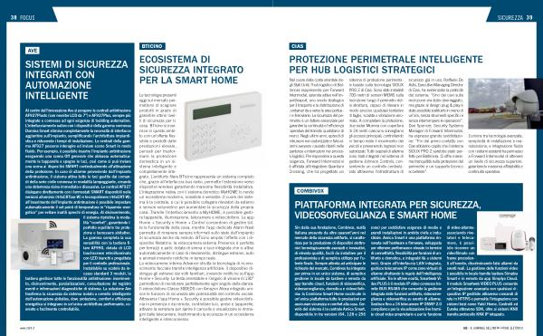 Sin dalla sua fondazione, Combivox, realtà italiana presente da oltre quarant’ anni nel mercato della sicurezza antifurto, si caratterizza per la produzione di dispositivi elettronici tecnologicamente avanzati e innovativi, di elevata qualità, facili da installare per il professionista e di semplice utilizzo per l’ u- tente finale. Sempre attenta ad anticipare le richieste del mercato, Combivox ha integrato per prima in un unico sistema, di semplice gestione in locale da tastiere e remota da app tramite cloud, funzioni di videoverifica, videosorveglianza, domotica e videocitofonia: la Combivox Smart Home racchiude in un’ unica piattaforma tutte le prestazioni per assicurare sicurezza e comfort alla casa. Cervello del sistema è la centrale Amica Smart, disponibile in tre versioni( 64, 128 e 256 zone) per soddisfare esigenze di medie e grandi installazioni in ambito civile e industriale. Amica Smart è una piattaforma rinnovata nell’ hardware e firmware, sviluppata per ottenere performance elevate in termini di connettività, flessibilità per funzioni di antifurto e domotica, e integrabilità a sistemi terzi. Grazie all’ interfaccia LAN integrata, gestisce telecamere IP come zone virtuali di allarme sfruttando le regole dell’ intelligenza artificiale. Tra le ultime novità, Smartweb Video PLUS è il modulo IP video connesso tramite BUS RS485 che consente la gestione integrata delle funzioni antifurto, videosorveglianza e videoverifica su evento di allarme. Gestisce fino a 16 telecamere IP ONVIF 2.0 compliance per la visualizzazione live tramite cloud video proprietario e per la funzione di video-allarme: associando rivelatori e telecamere, è possibile ricevere un videofilmato con frame precedenti all’ evento, discriminando falsi allarmi da eventi reali. La gestione delle funzioni video è possibile in locale tramite tastiera Simplya Smart e in remoto da app Simplya Cloud. Il modulo Smartweb VIDEO PLUS consente un’ integrazione avanzata con qualsiasi dispositivo IP gestibile attraverso comandi di rete in HTTP / S e permette l’ integrazione con sistemi terzi come Yubii Home, Control4 ed Eureka attraverso SDK, oltre ai sistemi KNX tramite protocollo KNX IP integrato.
