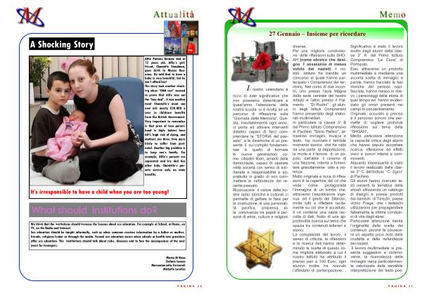 diverse . Per una migliore condivisione delle riflessioni sulla SHO- AH ( nome ebraico che designa l ’ assassinio di massa voluto dai nazisti ) il nostro Istituto ha bandito un concorso al quale hanno partecipato i Comprensivi del territorio . Nel corso di due incontri , uno presso l ’ aula Magna della sede centrale del nostro Istituto e l ’ altro presso il Palmento “ Di Rudinì ” , gli alunni degli Istituti Comprensivi hanno presentato degli elaborati multimediali . In particolare la classe 3 ° B del Primo Istituto Comprensivo di Pachino “ Silvio Pellico ”, attraverso immagini , musica e testo , ha ricordato il terribile momento storico che ha visto da una parte la deportazione , la morte e il terrore di un popolo , dall ’ altra il cinismo di una Nazione , intenta a fomentare gratuitamente odio e violenza . Molto originale e ricca di riflessioni è la copertina del cd che vede come protagonista l ’ immagine di un bimbo che , attraverso l ’ espressione ingenua ed il gesto del Silenzio , invita tutti a riflettere tacitamente su ciò che è accaduto . Il cd contiene una vasta raccolta di dati , frutto di una approfondita ricerca sul tema che spazia tra contenuti letterari e storici . La complessità del lavoro , il senso di criticità , le riflessioni e la ricerca dati hanno determinato la scelta di questo come migliore elaborato a cui il nostro Istituto ha attribuito il premio pari a 100 Euro ; ogni alunno inoltre ha ricevuto l ’ attestato di partecipazione . .