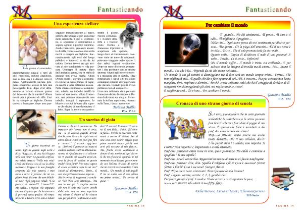 apparentemente uguale a tutti gli altri Francesco , rubizio anglofono , uscì di casa sua e si diresse verso il parco . Analogamente Dorina , pimpante ottantenne , decise di fare una passeggiata . Ella , dopo aver attraversato un terreno arenoso , giunse dal tabaccaio che le mostrò l ’ ultima novità per i giocatori di riffa . Così lei ne comprò un biglietto . Dorina usciva e Francesco , dopo aver pasl ' anima a chi ne è sottomesso . Ho imparato che l ' amore non si cerca , ma lo si accetta quando arriva ! Perché come l ' aria che respiri esso ti entra dentro e non ne puoi più fare a m eno !" L ' uomo agg iunse : " Arriverà il giorno in cui tutto ti crollerà addosso , tutti ti abbandoneranno , ti ripudieranno e ti odieranno . E quando ciò accadrà avrai ancora la forza di parlare in questo modo ? Cosa farai ? Non sarai capace di essere ottimista come lo sei ora !" Iniziò ad allontanarsi ... Triste ... E non si aspettava nessuna risposta . Ma io sorrisi , lo raggiunsi e conclusi ! " No ! Non sarò ottimista ... Ma non lo sarò per il semplice motivo che non lo sono mai stato ! Perché dalla vita non mi sono aspettato mai niente di buono ed ho vissuto solo per gli altri ! Continuerò a sorridere ! E ancora ! E ancora ! E ancora ! E sarò falso ... Falso .. Ed ancora falso ... Perché in cuor mio continuerò a morire di dolore ! Ma di una cosa sono sicuro : magari pian piano svanirò stanco perché non avrò più nessuno al mio fianco ... Ma , finché vivrò , continuerò a donare il mio sorriso ad ogni diavolo che mi sfiorerà lo sguardo ! E nel momento in cui lascerò questo mondo con l ' ultima briciola di sorriso che mi resterà in viso renderò il mio mondo ... Un mondo di soli angeli ! E me ne andrò con il mio ultimo ma primo sorriso ... Un sorriso di gioia ! "