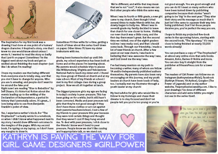 The readers of Girl Power can follow me on Instagram (kathrynelenaofficial), Facebook (Kathryn Friesen, YA Author), Google+ (The Power of Legends) and on my author website, Theprophesied.weebly.com. I like to post drawings I’ve done of different characters and add extra tidbits you might not see in the series itself.