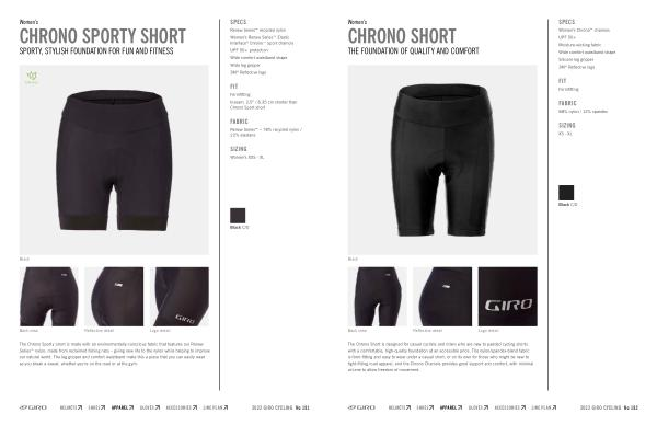 Women ’ s Chrono™ chamois UPF 50 + Moisture-wicking fabric Wide comfort waistband shape Silicone leg gripper 3M ® Reflective logo