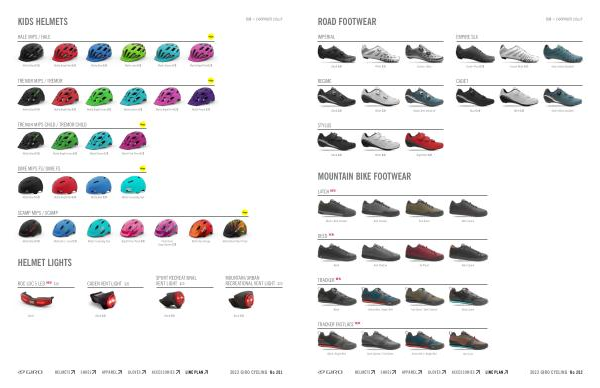 HELMETS SHOES APPAREL GLOVES ACCESSORIES LINE PLAN 2022 GIRO CYCLING No 282