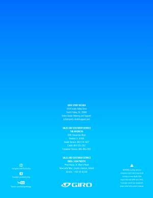 GIRO SPORT DESIGN 5550 Scotts Valley Drive Scotts Valley , CA . 95066 Online Dealer Ordering and Support : actionsports-dealersupport . com